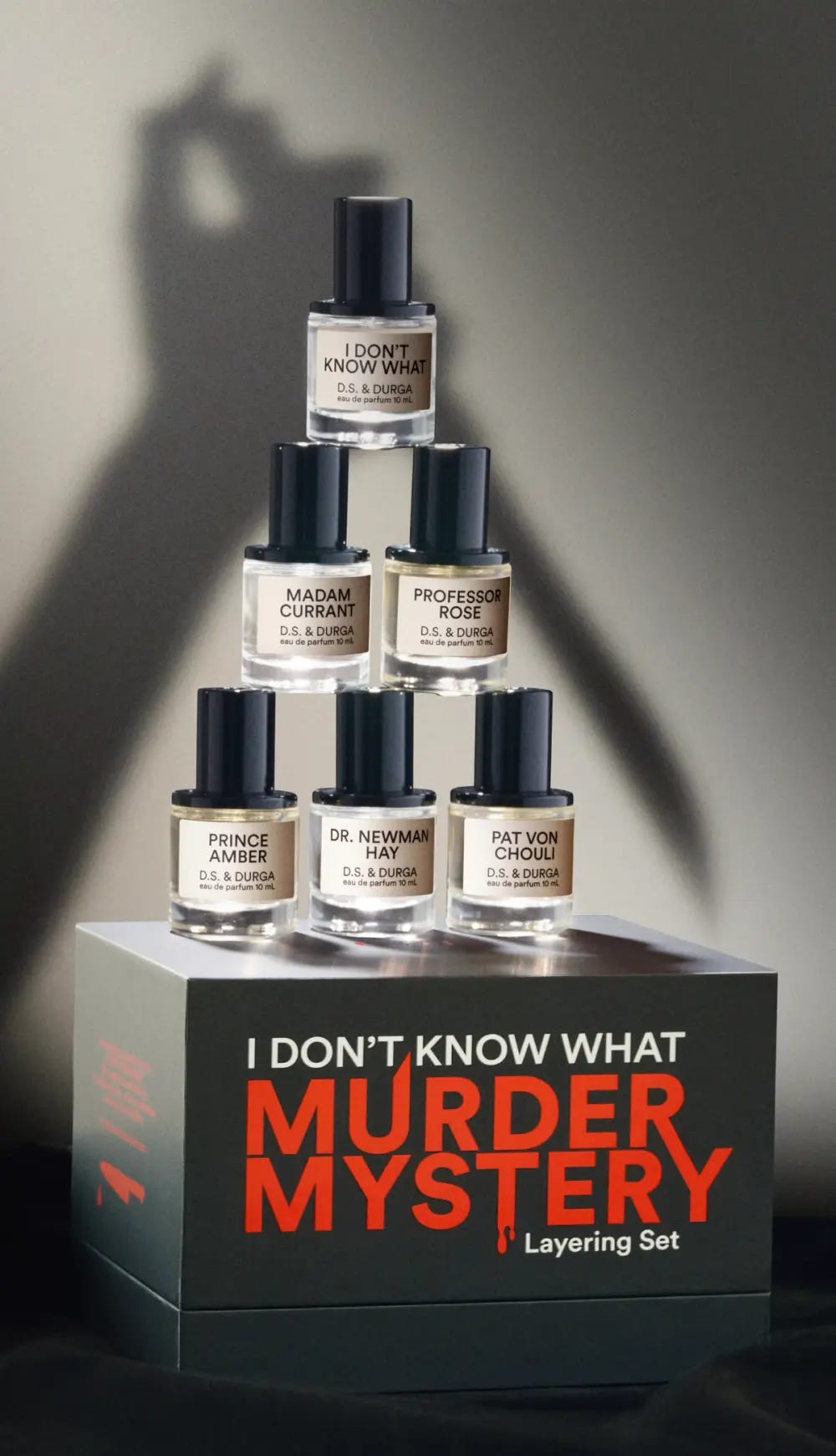 D.S. & Durga Murder Mystery Set: six perfumes designed to be layered while solving a murder mystery—so fun! The video for this set is a must-watch!